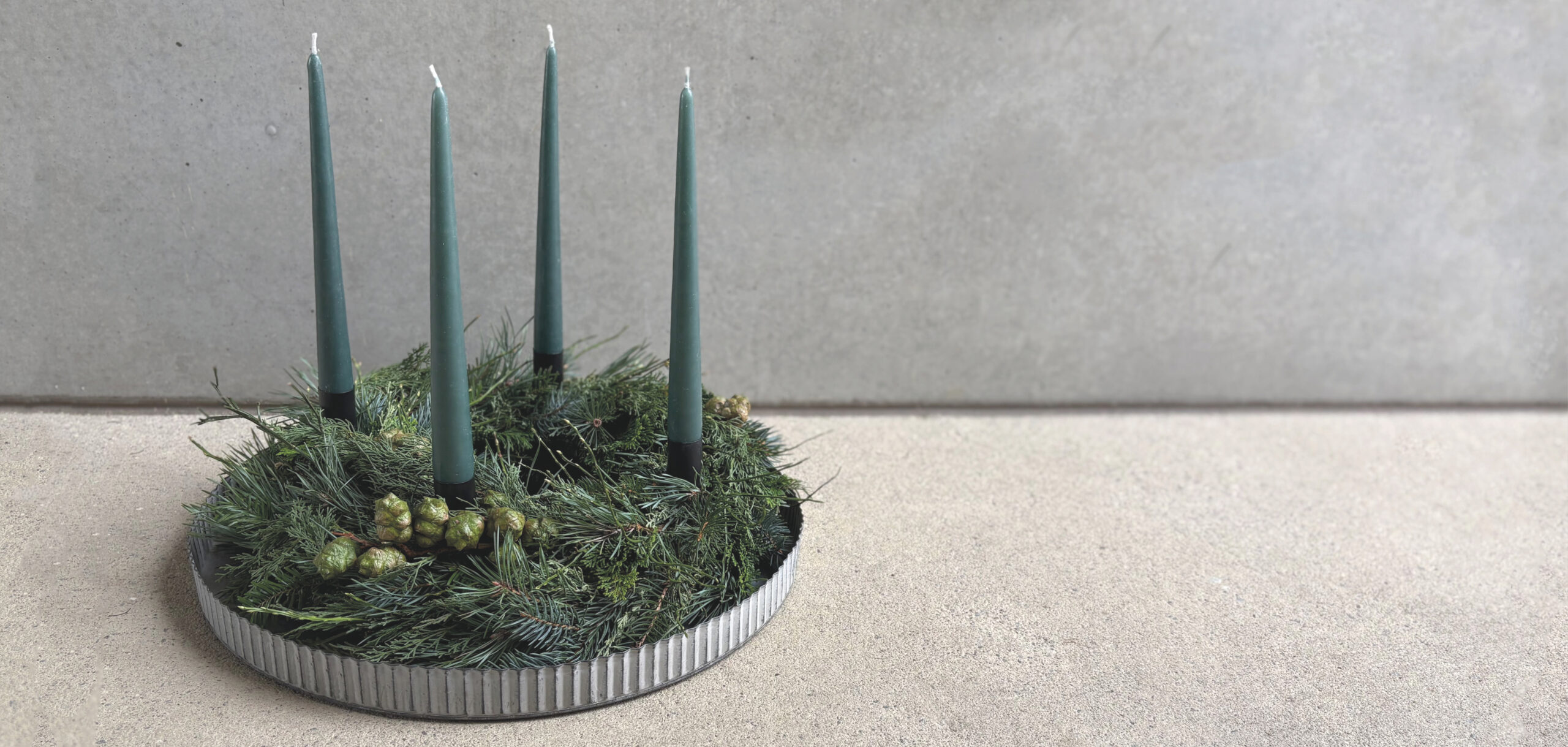 Une couronne de l’Avent faite de branches locales apporte une touche naturelle et évoque la douce attente de Noël.