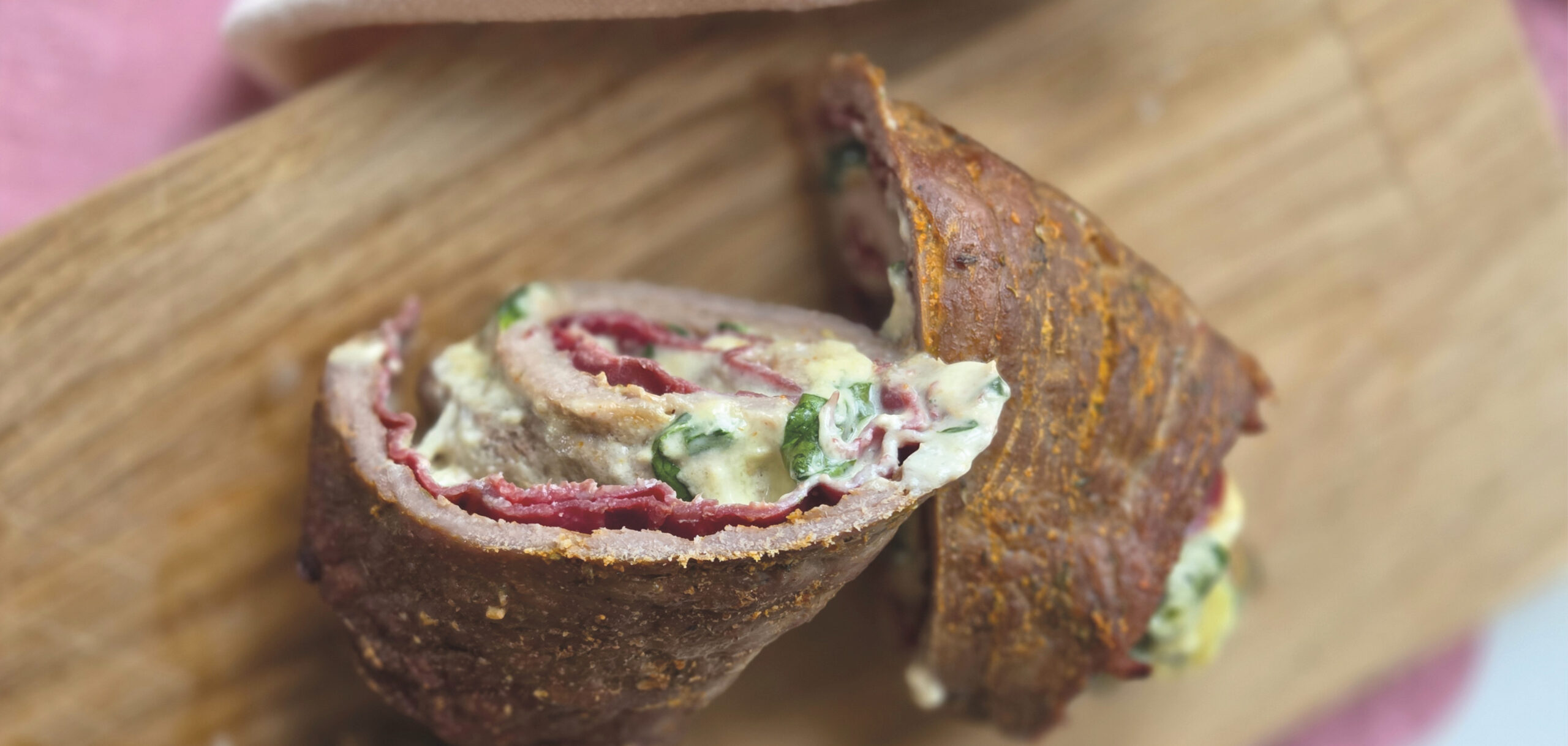 Les escalopes de bœuf farcies à l’ail des ours frais apportent une touche printanière épicée et un goût savoureux de cuisine régionale dans votre assiette.