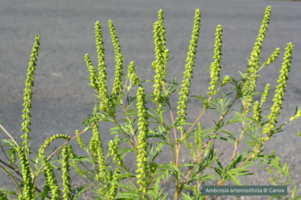 Le pollen d’ambroisie peut provoquer un fort rhume des foins et de l’asthme chez les humains, le contact avec la peau peut entraîner des réactions allergiques. La lutte contre l’ambroisie doit se faire avant le début de l’envol du pollen, en juillet.