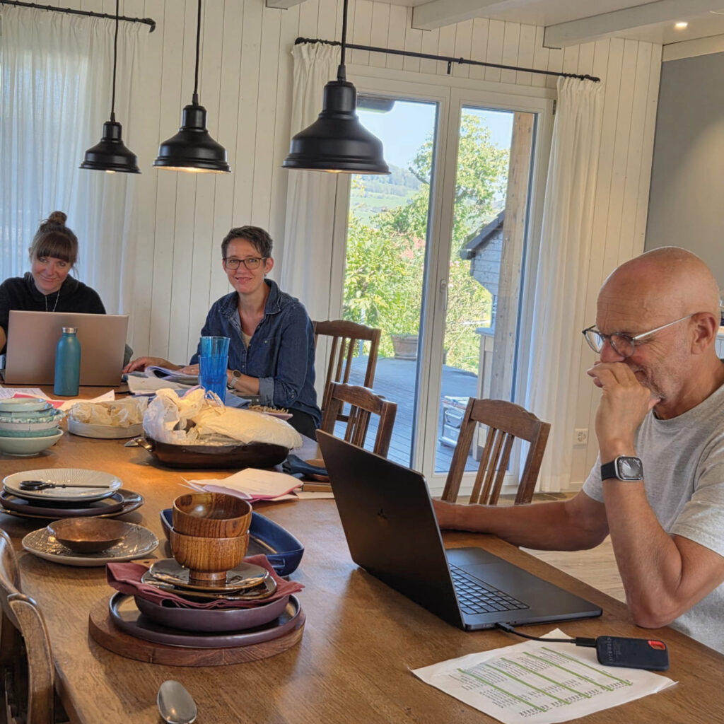 Nous avons tout d’abord élaboré ensemble un répertoire provisoire des recettes. Ensuite, nos deux cuisinières Rahel et Trudi ont démarré la rédaction. Pour cela, elles ont dû veiller à utiliser le même style rédactionnel. Elles ont souvent dû être inventives pour que le concept original « 5 variations sur 1 recette » soit réalisable. Enfin, Debora, Doris et Virginie ont testé chaque recette et l’ont ajustée au besoin.