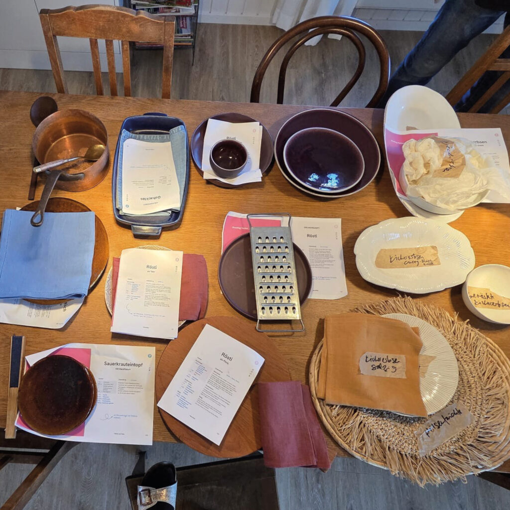 Avec une idée, beaucoup de passion – et des centaines d’heures de travail. Pour réaliser le nouveau livre de cuisine des paysannes et des femmes rurales qui paraîtra au printemps 2026 en collaboration avec les éditions LandLiebe (Ringier SA), il a fallu beaucoup de passion, de savoir-faire et de travail d’équipe pour cuisiner, rédiger, photographier, mettre en page et bien sûr planifier, cela durant de nombreux mois. Avec son livre de cuisine, la commission alimentation & économie familiale s’engage en faveur d’une consommation responsable de produits régionaux et de saison. Nous vous donnons ici un aperçu du nouveau livre de cuisine en vous emmenant dans les coulisses. Laissez-vous convaincre de tout le soin apporté à chaque recette.