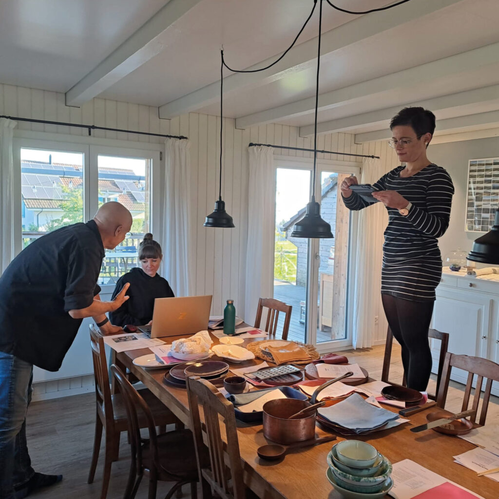 Le shooting photo a été planifié : Qu’est-ce qui sera cuisiné quand et que faut-il prévoir pour cela ? Nous avions besoin d’une part de toutes les denrées alimentaires pour les mets et d’autre part, de tous les accessoires tels que des assiettes, bols, nappes etc.