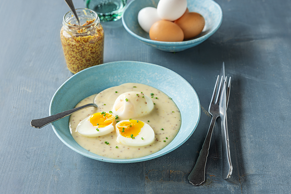 Verser la pâte par portion sur la passoire à knöpflis et les faire directement tomber dans de l’eau salée bouillante. Retirer les knöpflis avec l’écumoire dès qu’ils montent à la surface. Mettre dans une passoire et laisser refroidir sous l’eau froide.